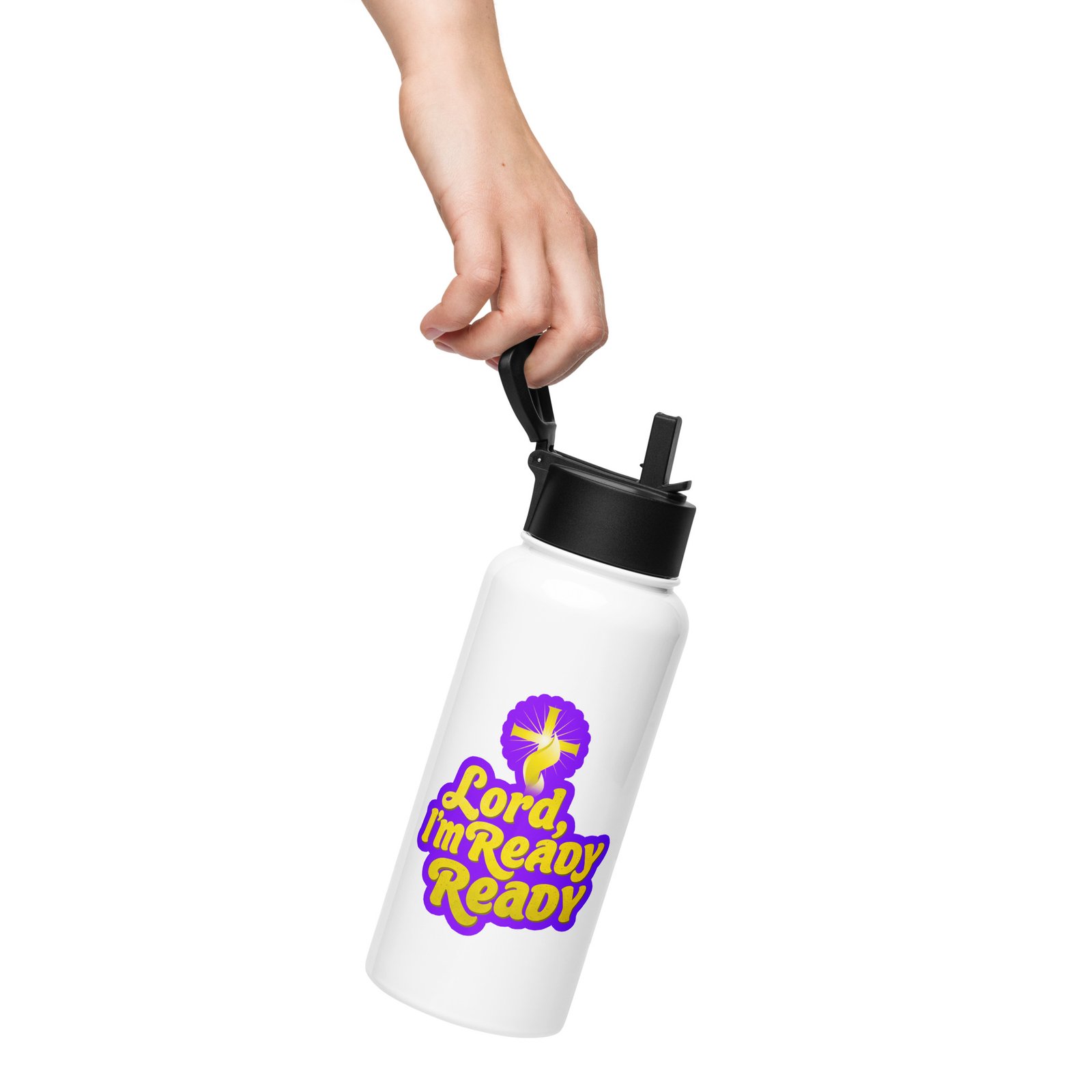 Stay hydrated all day with this 32 oz (950 ml) water bottle. It’s ideal for workouts or busy days, with a wide-mouth foldable straw for spill-free sipping and a rotating handle for easy carrying.